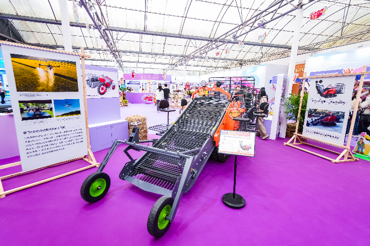 广东薯业全产业链成果展展示新产品——自走式薯类联合收获机