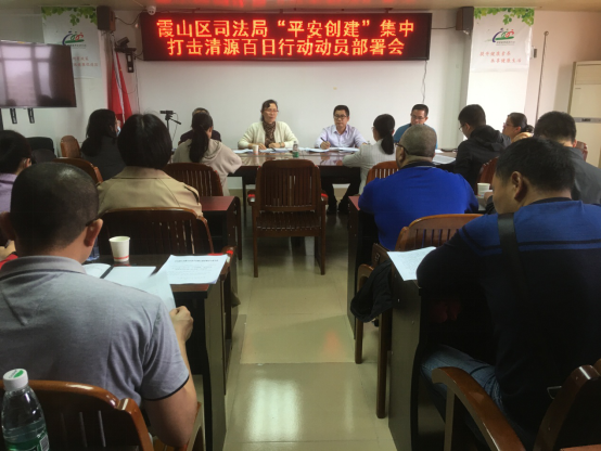 会议要求各股室处、司法所要提高思想认识,按照区委、区政府的统一部署,加强与区委政法委、市公安局霞山分局、区检察院、区法等政法部门的联系,围绕百日行动的工作目标和要求,充分发挥司法行政职能,认真开展集中打击清源百日行动。一是强化矛盾调处,二是强化特殊群体管控,三是强化律师刑事辩护指导,四是强化刑事案件律师辩护全覆盖,五是强化法治宣传教育,助力百日行动,为平安霞山建设提供有力法治保障。