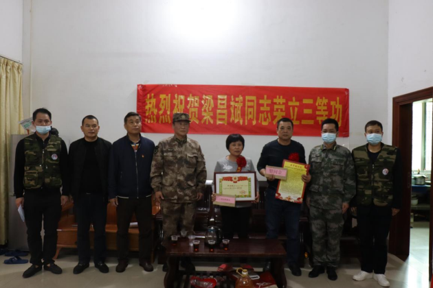 为立功受奖军人梁昌斌同志的家属送上立功喜报、节日慰问金、慰问信、春联及慰问品