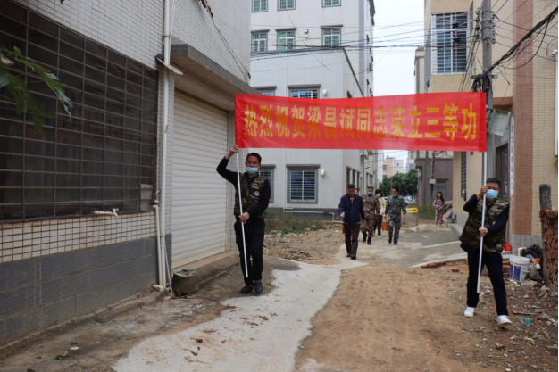 为弘扬拥军优属光荣传统,营造“一人立功、全家光荣”的社会氛围,1月25日上午,霞山区武装部陈宇全部长率区退役军人事务局、区武装部、相关街道、社区(村)居委会干部对我区荣立三等功军人及其家属开展送立功喜报和慰问活动,并向他们送去了立功奖励金、节日慰问金、慰问信、春联及慰问品等,传递党和政府的关怀和温暖。