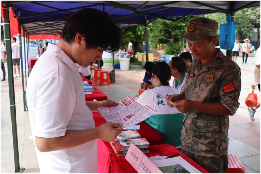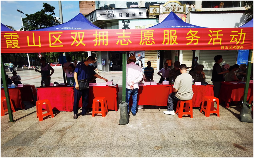 为进一步宣传“拥军优属、拥政爱民,党政军民齐努力、共创双拥模范城”的双拥理念,营造尊崇军人、关心军人、服务军人的浓厚氛围,6月15日,霞山区双拥办联合区人社局等双拥工作领导小组成员有关单位、驻霞部队和爱心企业在霞山民享路步行街(双拥示范街)举办第八场双拥志愿服务活动,为现役军人,各位军属、退役军人和三属等优抚对象提供更多服务。