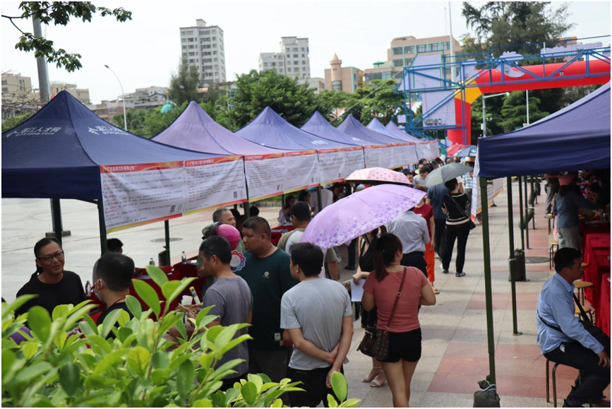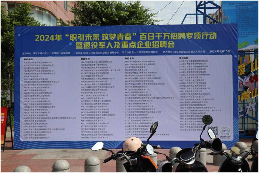 此次活动共有5个机关单位、1个街道、1个部队、110多家爱心企业和43家步行街商户参与,服务内容包括招聘会、一般身体检查、禁毒知识和妇女权益等法规政策宣传等。为解决退役军人、军属等优抚对象就业难问题,此次活动特别举办了主题为“2024年‘职引未来筑梦青春’百日千万招聘专项行动及退役军人及重点企业招聘会”,邀请了110多家湛江知名企业进场招聘,为优抚对象和市民提供3000多个优质岗位。据不完全统计,第八场双拥志愿服务活动入场近3500人次,招聘会活动现场达成意向241人,其中退役军人、军属等优抚对象及家人达成意向26人。直播带岗点击量5354次,在线投递简历108份。除了招聘会服务外,其他双拥志愿活动共服务对象100余人次。以下是活动现场剪影: