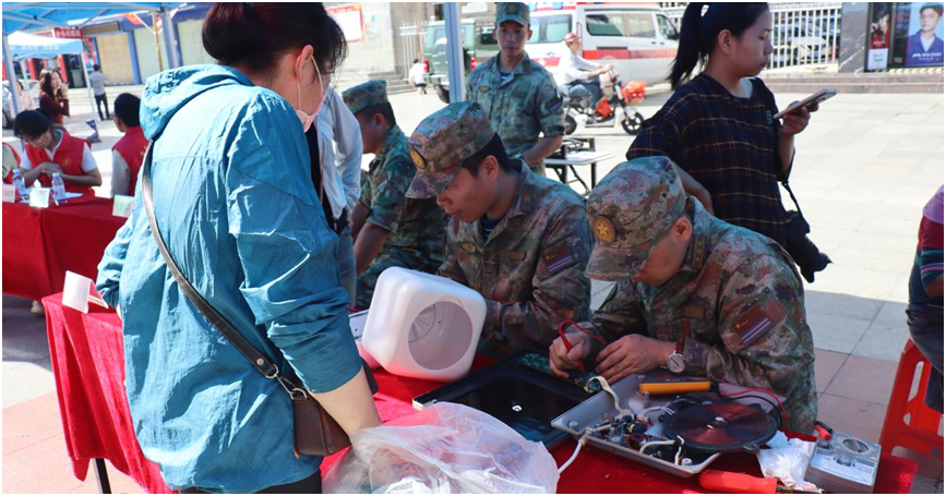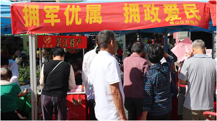 10月25日上午,霞山区双拥办联合湛江市退役军人事务局、区委宣传部(区国防教育办)、区双拥工作领导小组各成员单位、驻霞部队、广东医科大学附属第二医院和爱心企业(单位)等22个单位在双拥示范街举办双拥志愿服务活动,为军人军属、退役军人和其他优抚对象以及广大市民朋友提供义诊、体检、就业招聘、免费维修家电、购物优惠折扣、国防作品展和国防知识宣传、拥军优属政策宣传、医学急救知识宣教、学雷锋做好事等关爱服务,服务人数共约1300余人,得到了广大优抚对象和市民朋友的肯定和表扬。活动结束时,霞山区退役军人事务局领导对参加活动的企业单位发放“同心创建双拥模范城爱心企业(单位)”荣誉证书。以下是双拥志愿服务活动剪影: