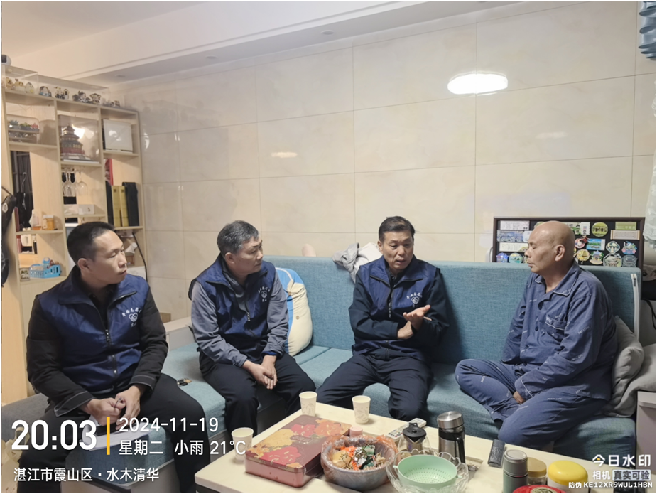 2024年11月19日晚,区退役军人事务局副局长钟敏与街道平安夜访工作组干部职工一起到参战退役军人陈昌茂家中开展平安夜访工作,了解其目前家庭生活情况及身体健康情况,向他宣传解释家相关优抚政策,鼓励他退役不退色,继续发扬优良革命传统精神。