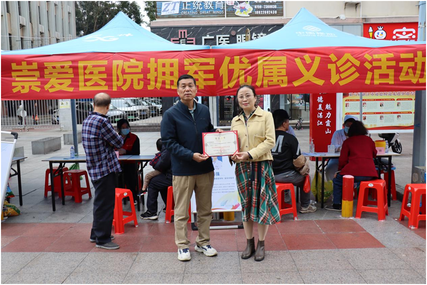 活动结束后,霞山区双拥办给湛江崇爱康复医院颁发了“同心创建双拥模范城爱心企业”荣誉证书。下一步,霞山区会进一步整合社会组织力量,为现役军人,各位军属、退役军人和三属等优抚对象提供更实际的双拥优惠服务。