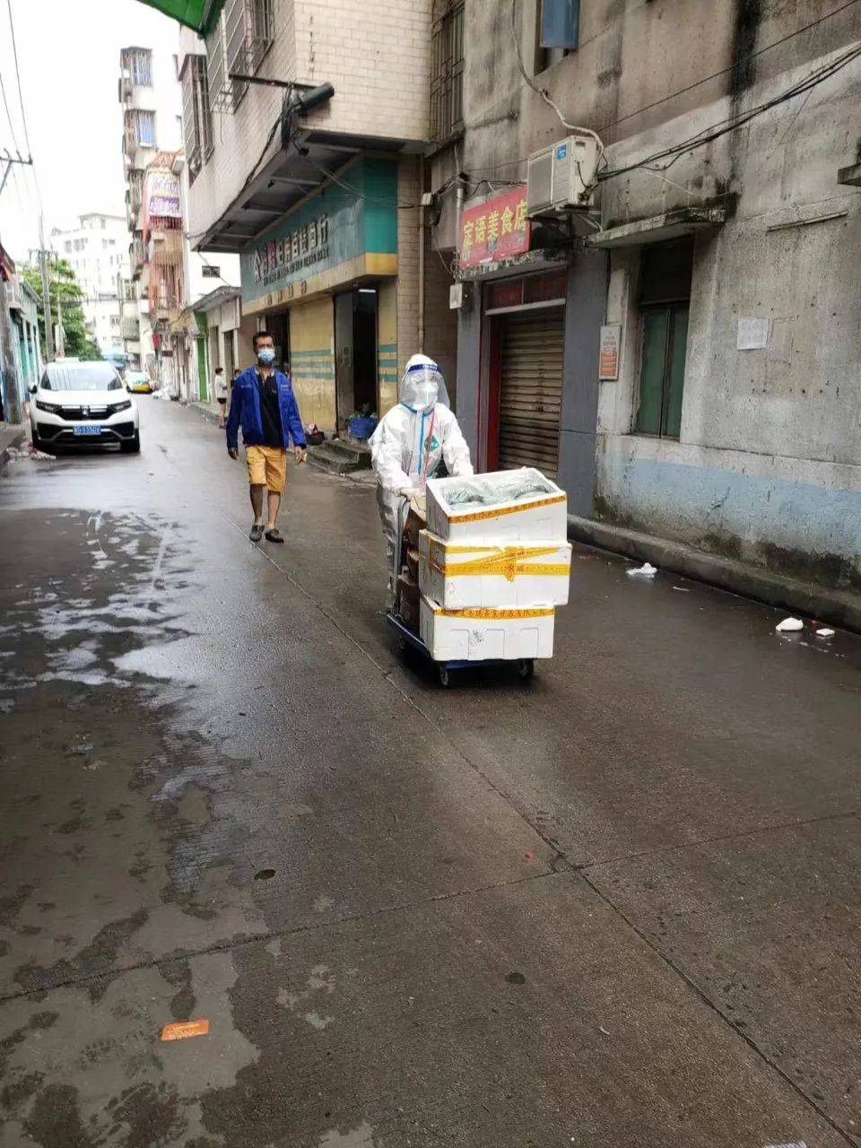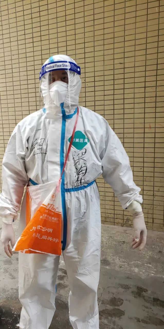 作为防疫工作的老队员,梁海生在以往的基层防疫工作中有出色表现。接下工作任务以后,梁海生迅速又简单地打包好日常换洗衣物,安顿好家中的孩子和父母,走进了封控区驻守地,用行动践行了文旅体人的初心和使命。在绿茵家园管控区,也有文旅体志愿者的身影。由于所居住小区被管控,原本应参与南粤学校全员核酸检测工作的志愿者祝弘被封在了小区里。在无法参与志愿服务的焦急中,祝弘主动申请,参与了管控区的志愿服务工作,每天负责为小区内住户分发物资、协助核酸检测等。