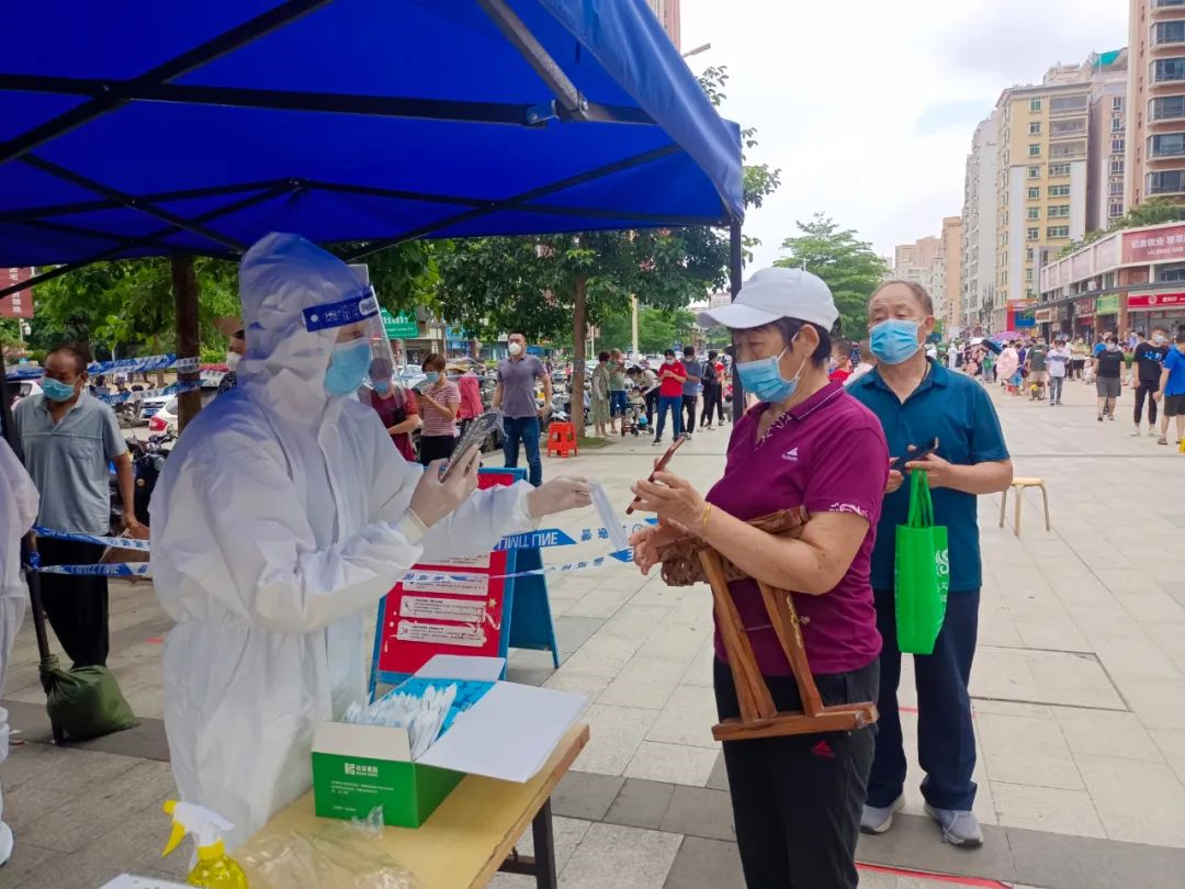 文旅体志愿者开通绿色通道,帮助群众检测核酸