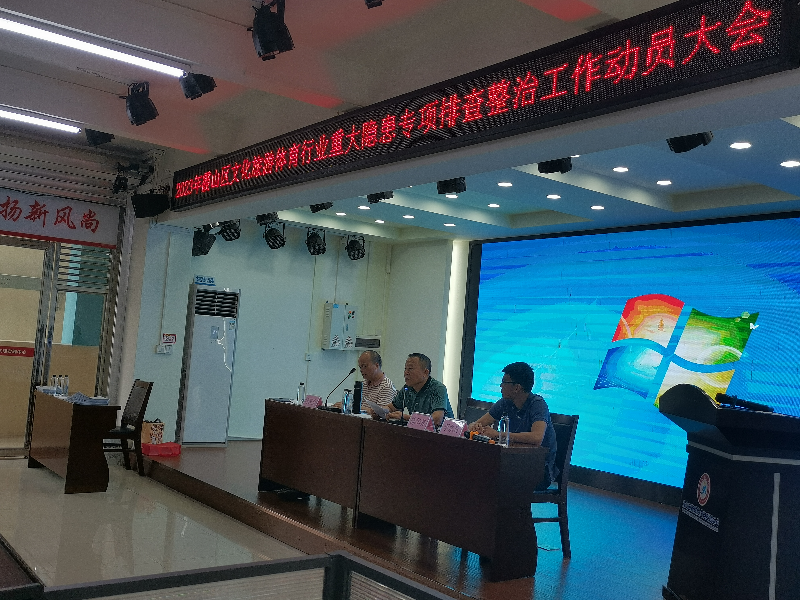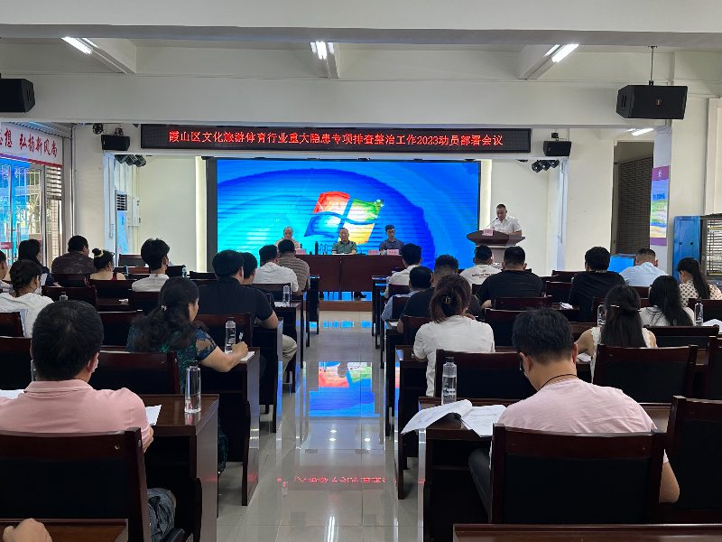 2023年6月8日下午,2023年霞山区文化旅游体育行业重大事故隐患专项排查整治工作动员大会在霞山区图书馆二楼会议室召开。区文化旅游体育局领导、全区文化旅游体育行业经营企业负责人参加会议。