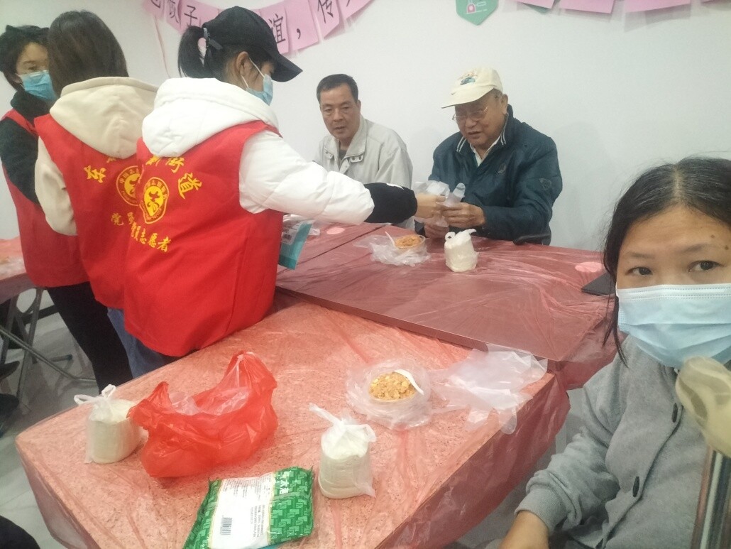 图3:活动前准备,志愿者为居民分发做饺子的材料。