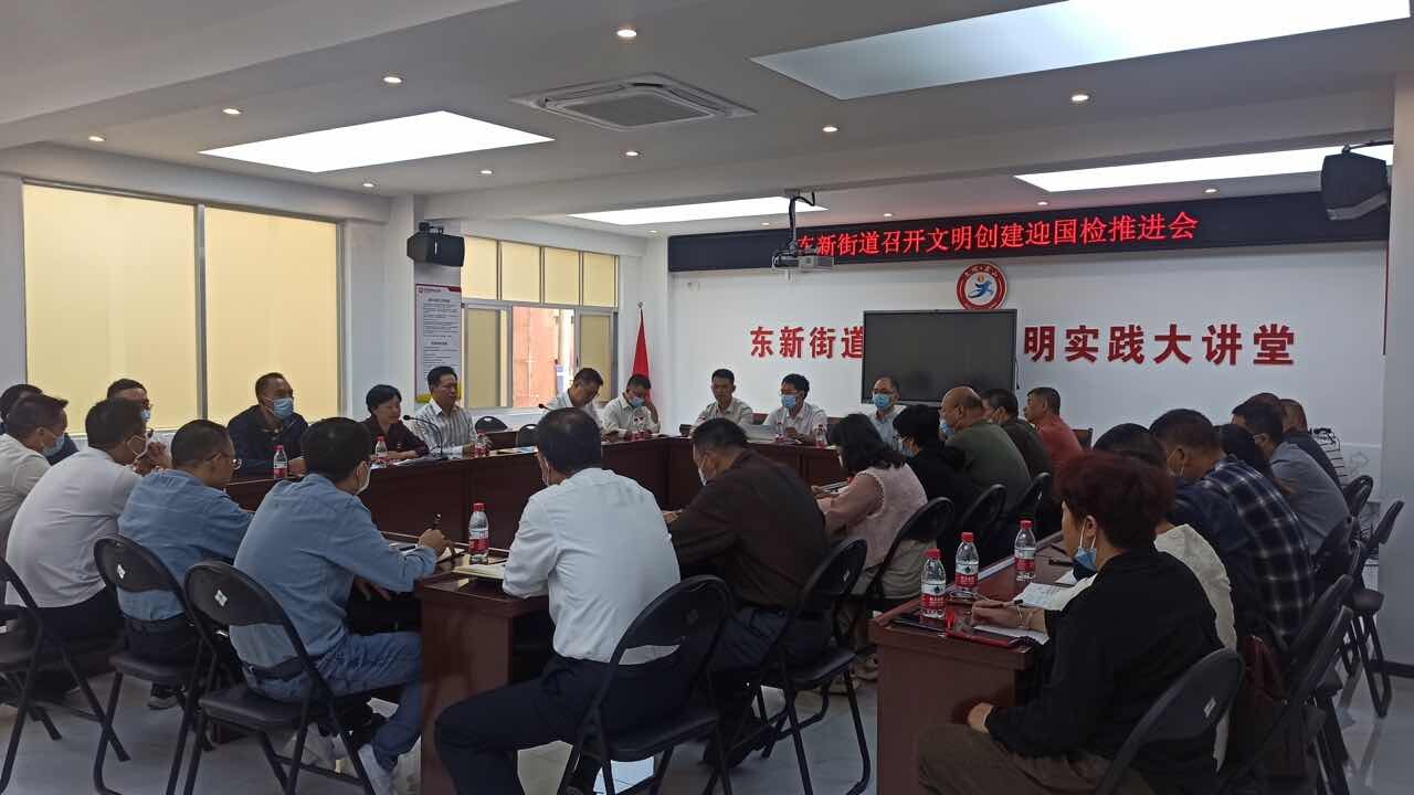 为全力做好全国文明城市迎国检工作,进一步巩固文明城市创建成果,11月7日,东新街道召开文明城市创建迎国检工作推进会。区挂点领导陈乔美、市区包联包创单位领导、东新街道全体班子成员及各村(社区)书记参加会议。