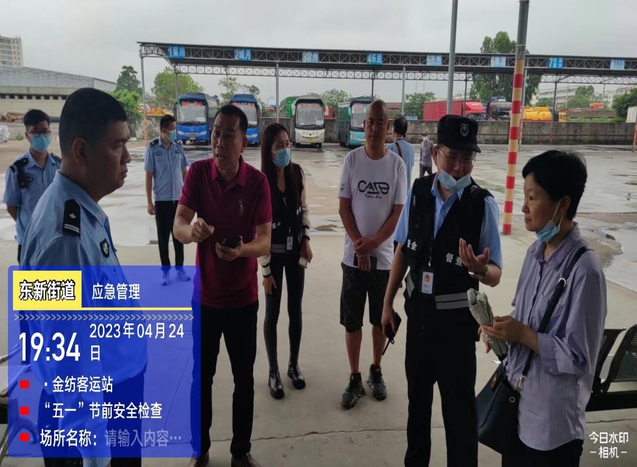 为进一步加强“五一”期间全街道安全生产、消防安全等工作有序开展,确保辖区安全形势持续稳定。4月24日,东新街道党工委书记甄宇莹同志,东新街道党工委副书记、办事处主任尤富民同志带领街道应急办、执法办工作人员、相关村(社区)干部对辖区重点行业领域开展“五一”节前安全检查,街道党工委委员、办事处副主任揭海明同志,党工委委员、东新派出所所长邓海斌同志陪同,东新派出所、霞宝市场监管所相关领导和工作人员参加检查。