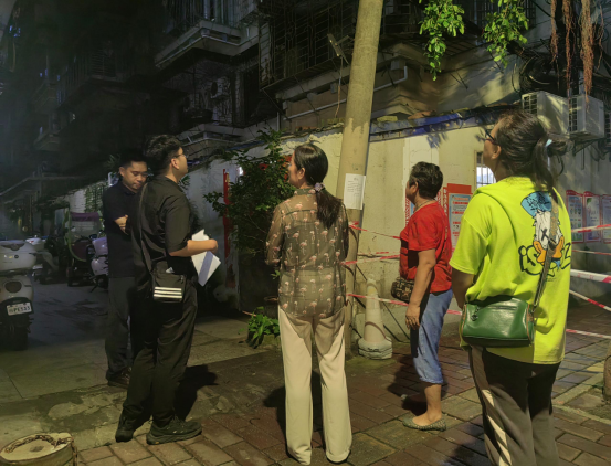 9月19日晚,湛江市港区人民医院院长伍妃、街道副主任窦国恒和海港社区干部一行深入友谊一横路开展平安夜访工作。“友谊一横路38号有根倾斜将倒的电线杆,安全隐患极大”海港社区居民伍女士担心安全隐患影响生活,借着街道“平安夜访”夜访之机反映情况。夜访工作组一行人马上到现场查看情况,废弃电线杆在路边摇摇欲坠,让人心惊胆战。