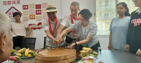 当天,友谊街道食品公司宿舍党支部正式揭牌,街道领导现场为大家讲了一堂生动的党课。党课结束,党员同志欢聚一堂共同切发糕、拉家常、叙情谊。