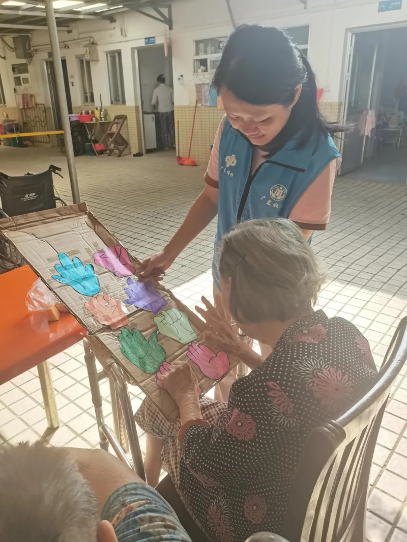 浆汁随糕作节,樱桃与酪同庆。10月11日上午,友谊街道社工站联合港区人民医院开展了重阳节主题活动。活动筹备前,社工们提前了解了养老院老人们的基本状况,为港区人民医院敬老院全体60余名老人准备了小蛋糕、香蕉、哈密瓜、橘子等适合老人食用的水果。活动中,社工们与老人们进行了亲密的互动,专门设计了符合老人身体特征的简单小游戏,通过游戏互动锻炼老人的大脑反应能力;为行动不便的老人剪指甲,做简单个人卫生清理,手把手教老人使用智能手机,倾听老人的故事和心声,用行动给予老人们情感上的支持和安慰,缓解老人在养老院思念家人的孤独感。老人们脸上洋溢着幸福的笑容,纷纷表示感谢并夸赞社工的体贴服务。