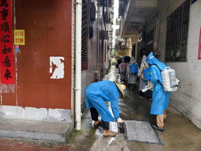 针对降雨天气特点,街道结合辖区实际,对消杀工作进行精准部署,确保“雨不停、消杀不断,质不减、效不降”。优先对居民小区单元楼道开展消杀,同时推进背街小巷、公共绿化带等区域积水点放置灭蚊颗粒剂。