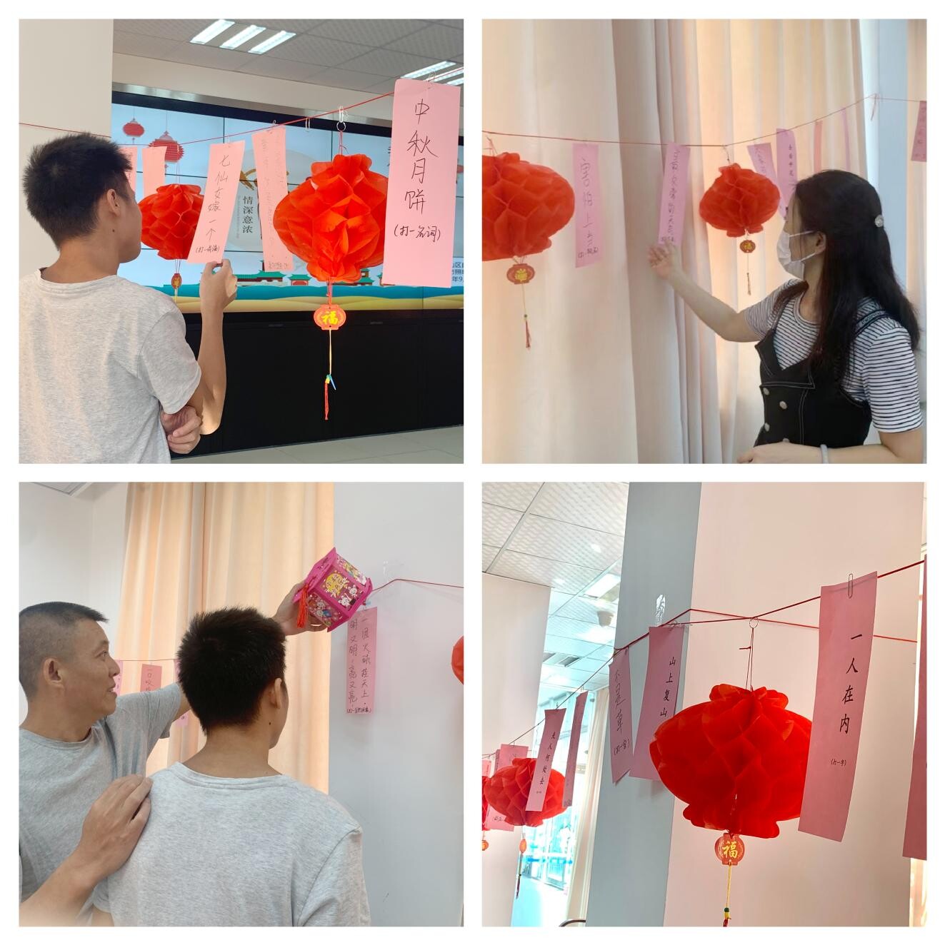 中秋节以月之圆兆人之团圆,为寄托思念故乡、亲人之情,祈盼丰收、幸福之意,成为丰富多彩、弥足珍贵的文化遗产。本次活动以猜灯谜、送礼品的形式开展,灯谜区一个个灯谜和灯笼交错悬挂,灯谜内容广泛,谜面主要围绕文学、历史、自然等方面的知识,大家看着一条条悬挂的灯谜,认真思考,互相竞猜。在欢声笑语中,机关同事们一起在猜灯谜中重温了中国文字的美好,体会了中秋文化的魅力。在领取到礼品后,大家脸上洋溢着笑容,现场场面十分热闹,气氛融洽。