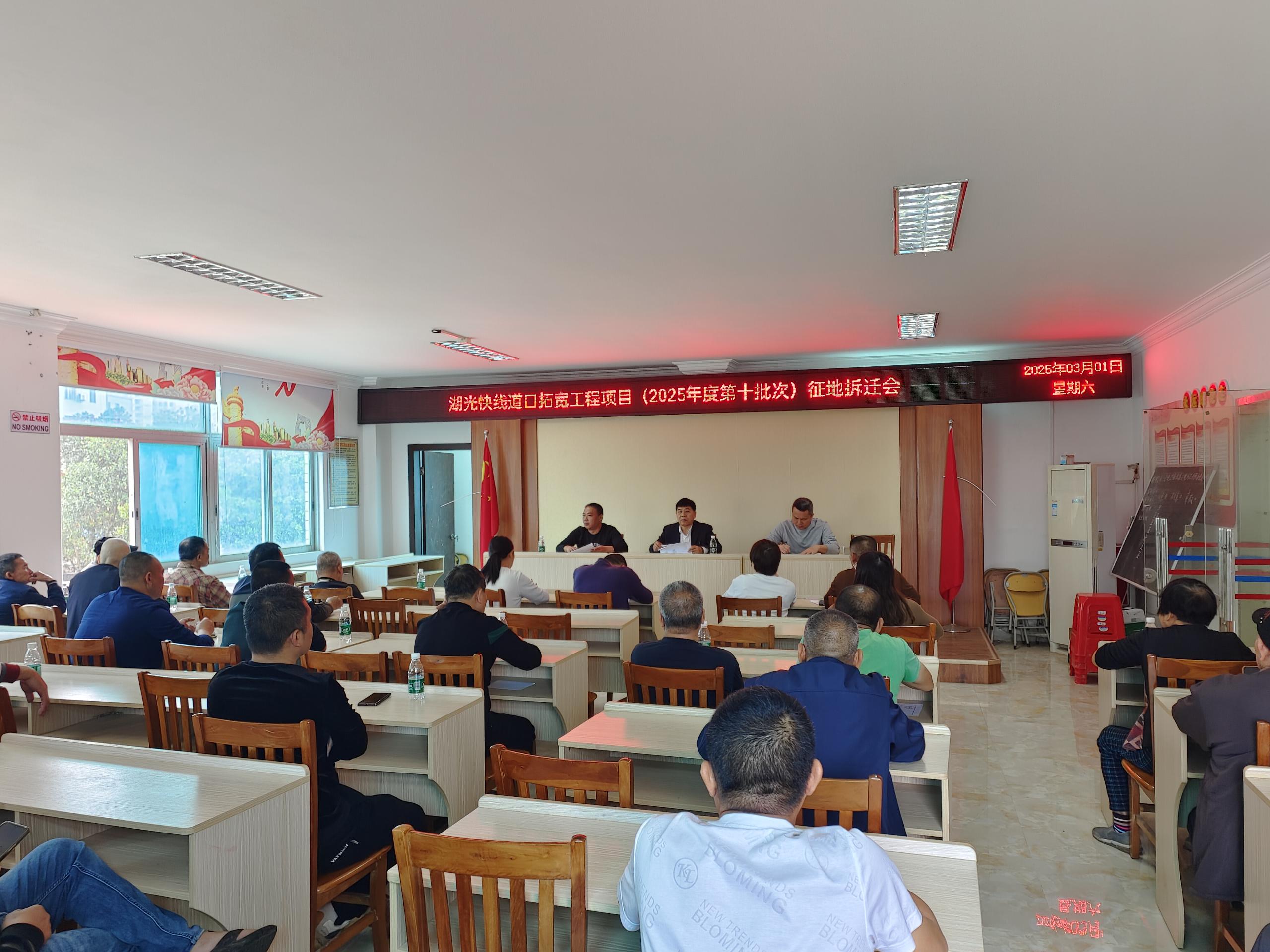 为顺利推进湛江市湖光快线道路拓口工程项目开发建设,促进高铁新城片区交通设施联通,切实保障区域高质量发展,3月1日,区自然资源局林湛澄局长率队到楼下村委会,组织村委干部及村民代表召开湖光快线道口拓宽工程项目征地会,我局管制股人员参与会议。